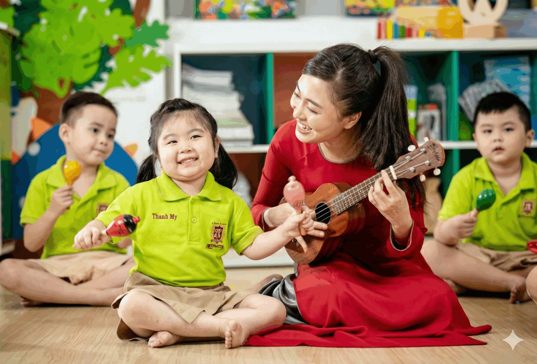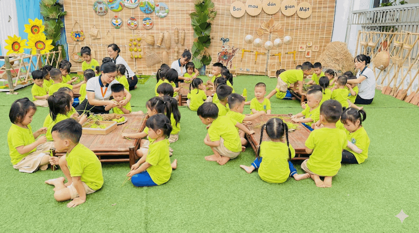 Học tiếng Anh qua chơi và giao tiếp tự nhiên, bám sát chương trình tiếng Việt, hoạt động đa dạng theo từng ngày.
