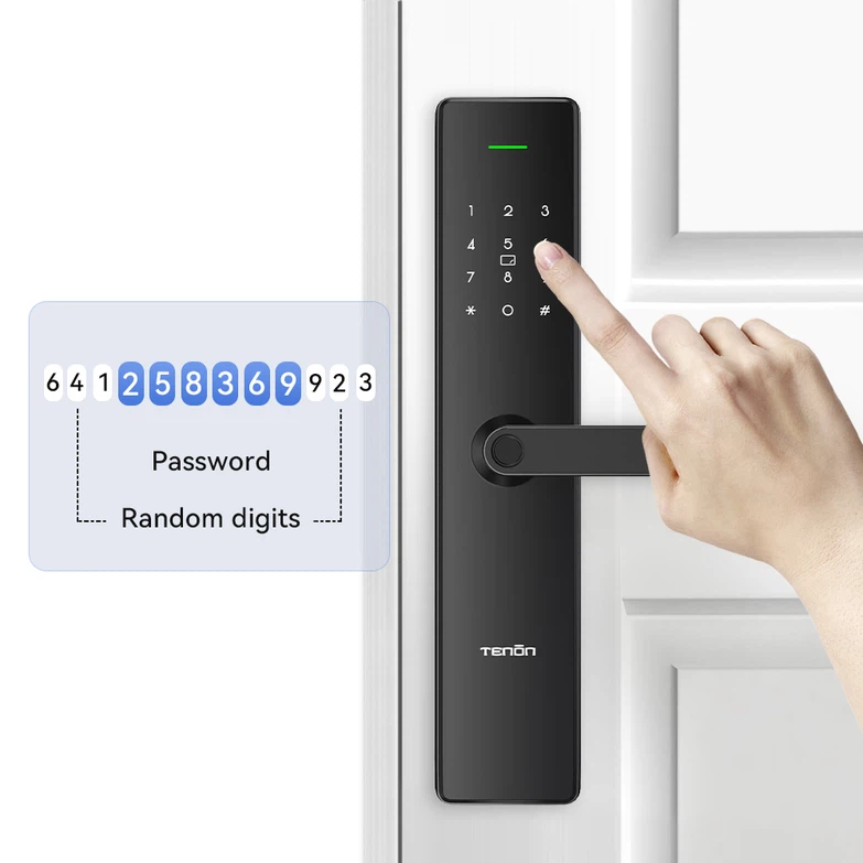 Giải pháp OEM khóa thông minh Tenon cung cấp đa dạng phương thức mở khóa như vân tay, mật khẩu, thẻ IC, khuôn mặt, vân lòng bàn tay, chìa cơ và điều khiển từ xa qua app, giúp đáp ứng nhiều nhu cầu sử dụng và nâng cao trải nghiệm người dùng.