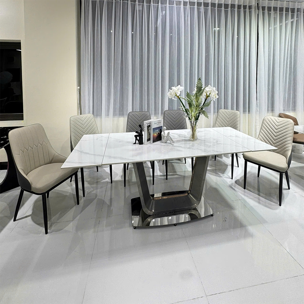 So với các mẫu bàn ăn truyền thống, sản phẩm còn trang bị khả năng mở rộng mặt bàn một cách linh hoạt. Điều này giúp gia chủ dễ dàng thay đổi kích thước bàn tùy theo nhu cầu sử dụng. Khi không cần mở rộng, bàn có kích thước vừa phải, phù hợp cho các bữa ăn hàng ngày. Khi có khách ghé thăm, bàn được mở rộng hết mức để phục vụ nhiều người hơn, tạo nên một không gian sum họp/tụ tập thoải mái và rộng rãi.