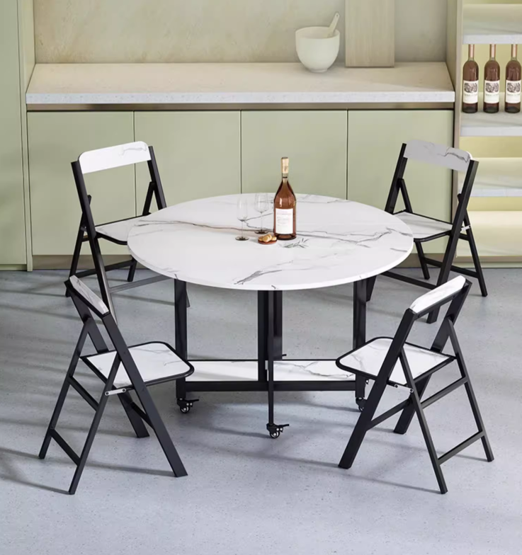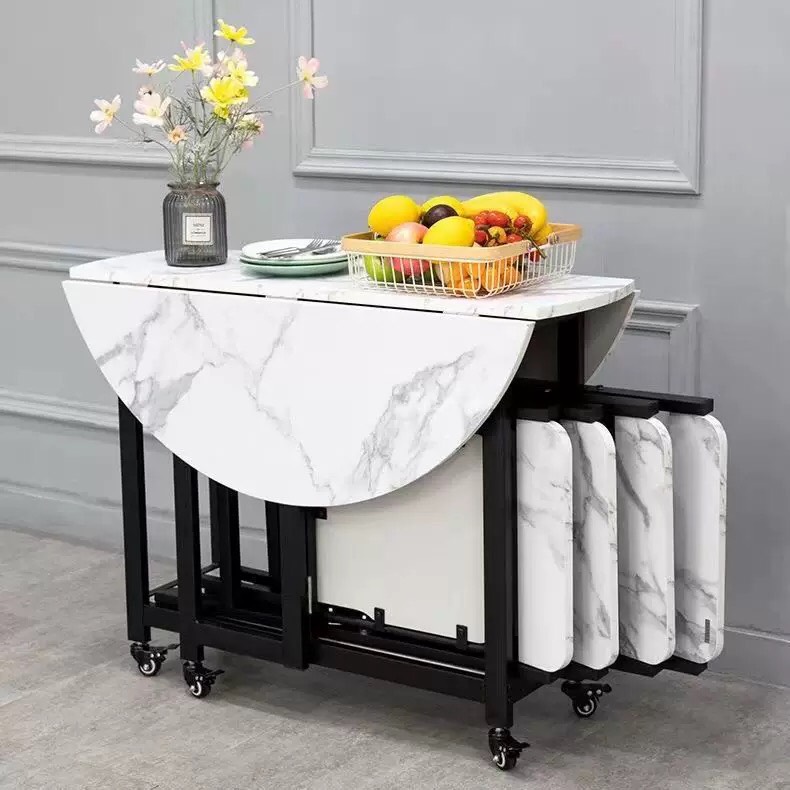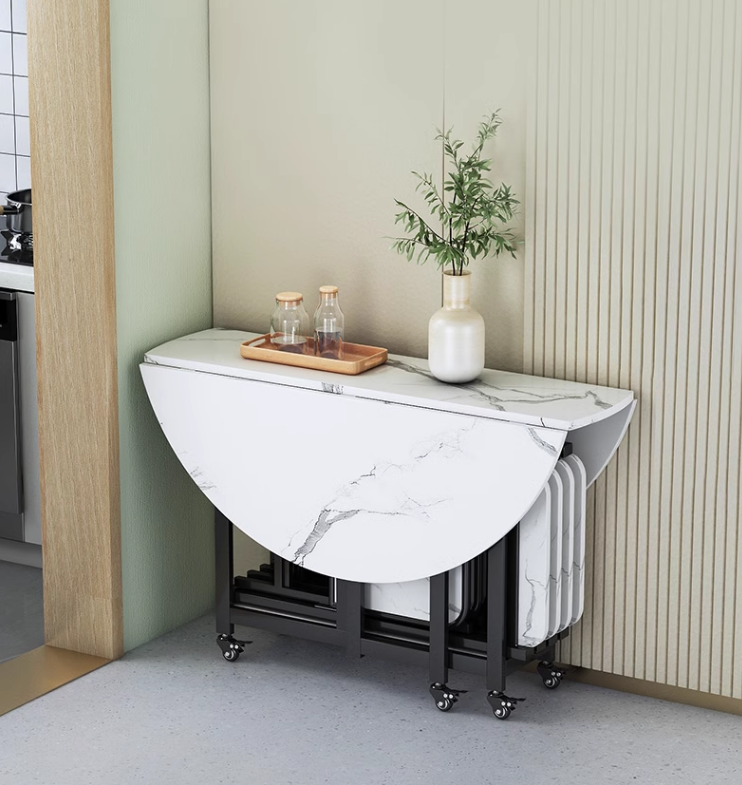 Khi bàn gập lại còn 1 nửa, diện tích mặt bàn nhỏ, thích hợp với những buổi họp mặt/tụ tập ít người như thưởng thức trà chiều một cách vui vẻ cùng vài người bạn chẳng hạn. Giúp không gian nhà bạn trở nên thư thái hơn.