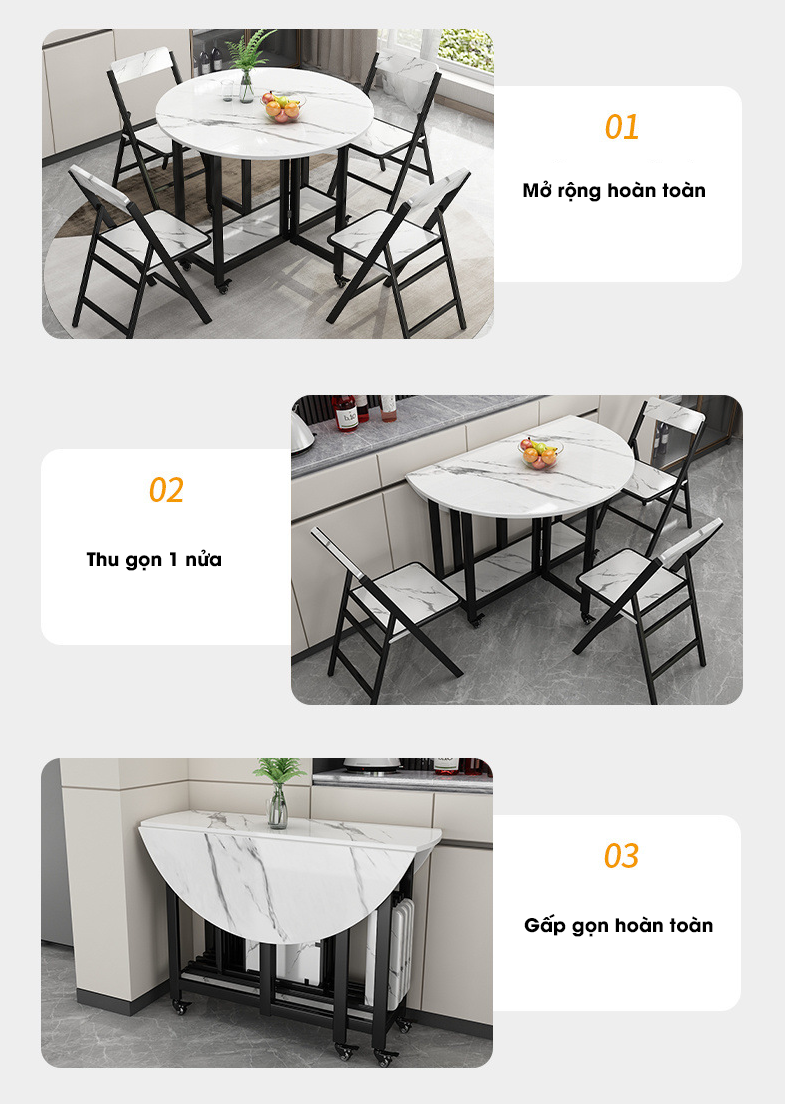 | Tên sản phẩm: Bộ Bàn Ăn Tròn Thông Minh Gấp Gọn ERICA | |