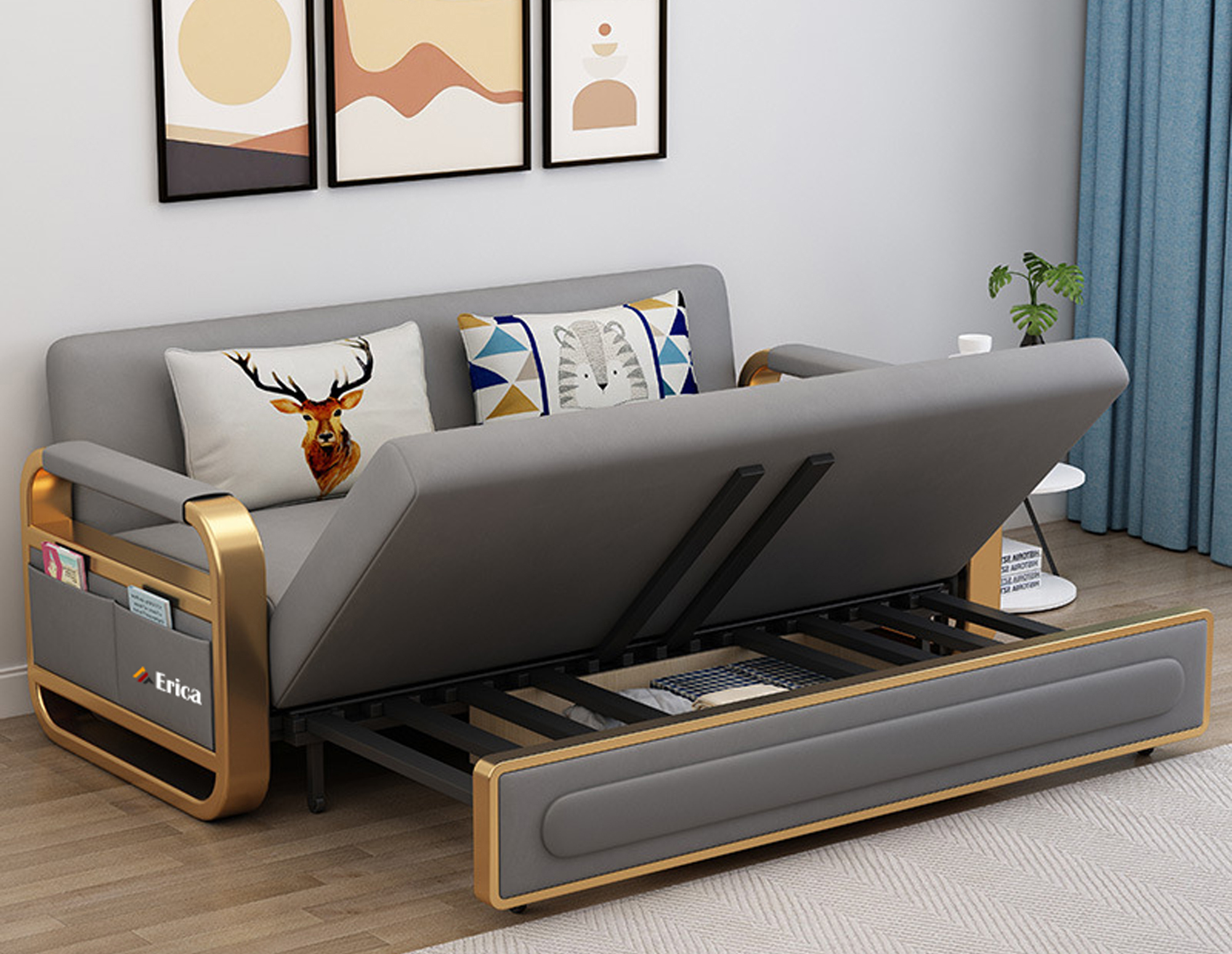 - Sofa tiếp khách: Chỉ với thao tác gập đơn giản, giường Erica biến thành sofa hiện đại, phù hợp cho phòng khách nhỏ hoặc phòng làm việc tại nhà.