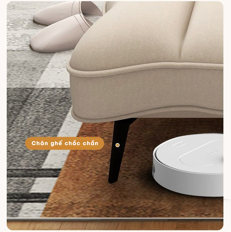 Thiết kế chân ghế cao thoáng, vừa tạo nét thanh mảnh hiện đại, vừa giúp dễ dàng vệ sinh bên dưới, giữ cho không gian luôn sạch sẽ và thông thoáng.