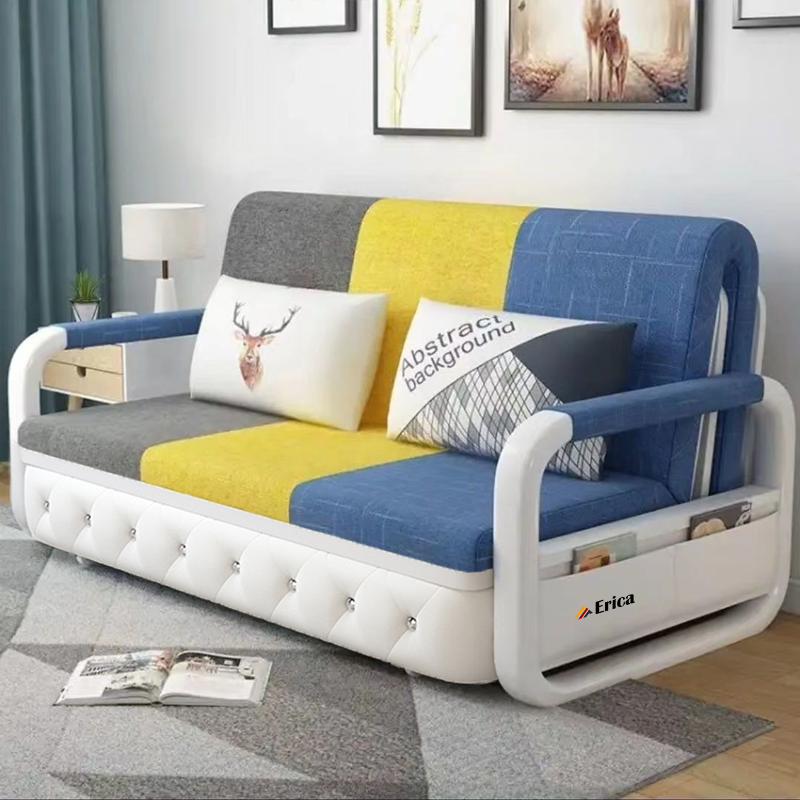 Ghế sofa thông minh ERICA – E2 phong cách Hàn Quốc đề cao sự tối giản, chú trọng vào tính ứng dụng của sản phẩm. Có thể chuyển đổi thành giường ngủ nhanh gọn. Một ngăn để đồ rộng rãi ở ngay bên dưới mặt đệm, cho phép cất giữ đồ đạc/vật dụng cá nhân. Bên cạnh tay vịn là ngăn túi zip để sách báo, tạp chí, máy tính bảng, điều khiển TV,.... Đệm sofa là đệm cao su non kết hợp bọt biển xốp Flot Flution đàn hồi tốt; bên ngoài bọc vải lanh mềm mại, thoáng khí, dễ vệ sinh; cho cảm giác êm ái, thoải mái mỗi khi sử dụng.