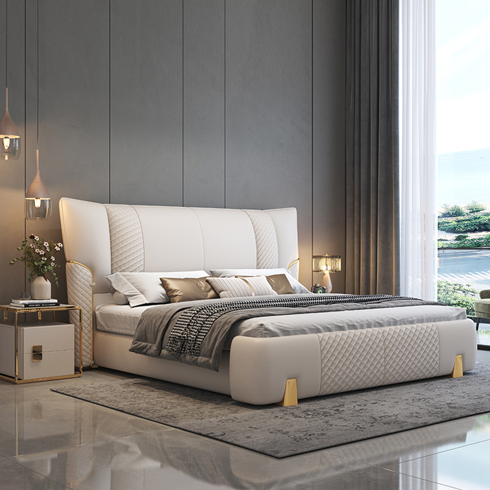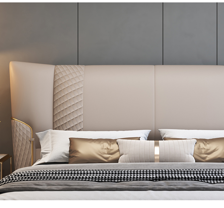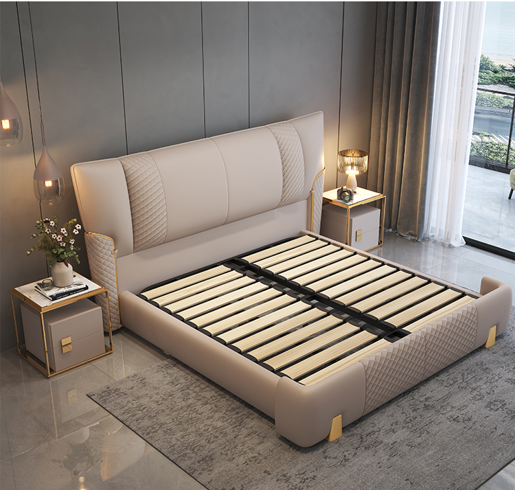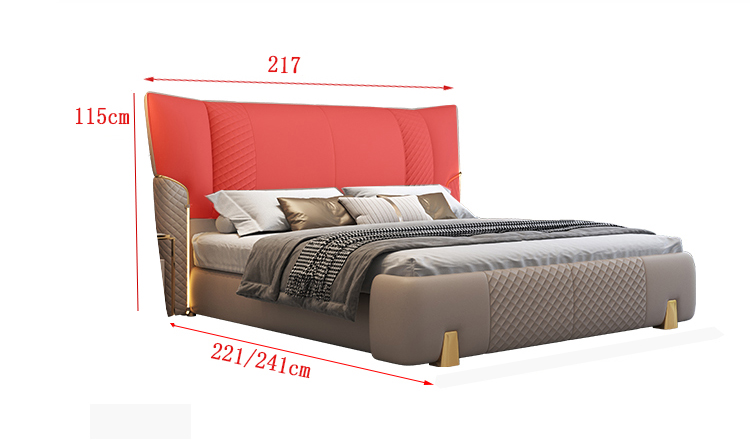 Toàn bộ bề mặt giường được bọc da Nappa – chất liệu nổi tiếng với độ êm mịn, thoáng khí và khả năng giữ dáng lâu dài. Không chỉ mang đến cảm giác dễ chịu khi sử dụng, lớp da còn giúp giường giữ mãi vẻ sang trọng và hiện đại theo thời gian.
