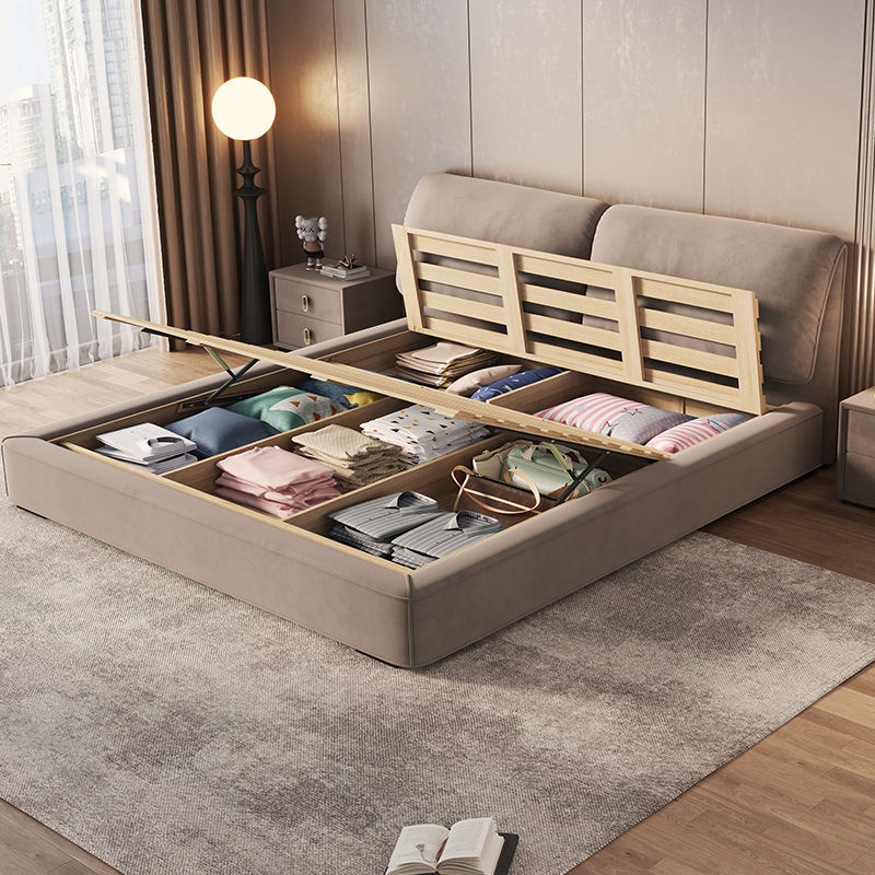 Giường được tích hợp hệ thống nâng thủy lực giúp mở khoang chứa rộng rãi bên dưới. Bên trong được chia thành nhiều ngăn lưu trữ khoa học, hỗ trợ người dùng cất gọn chăn gối, quần áo và đồ dùng cá nhân, mang lại căn phòng gọn gàng, tối ưu diện tích.