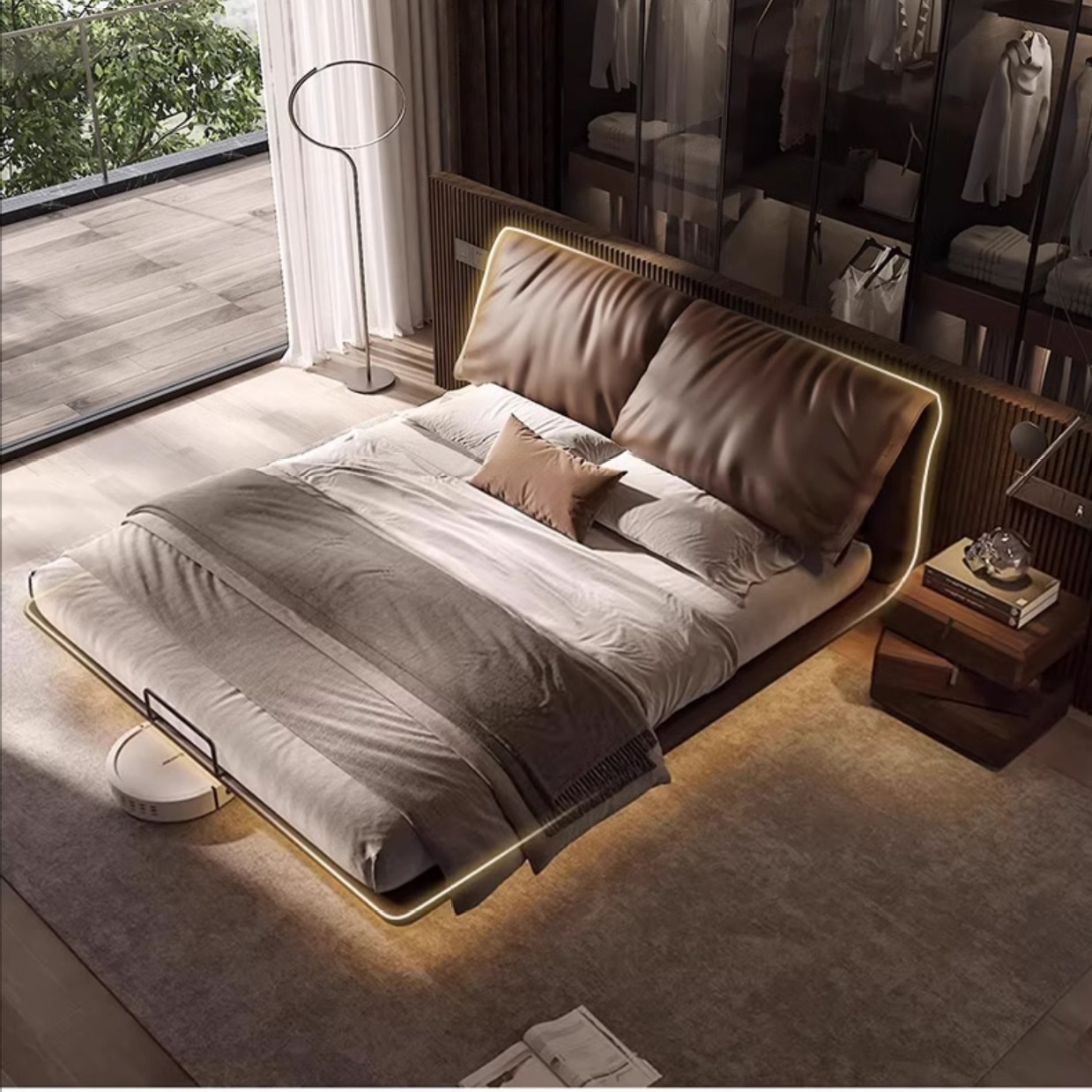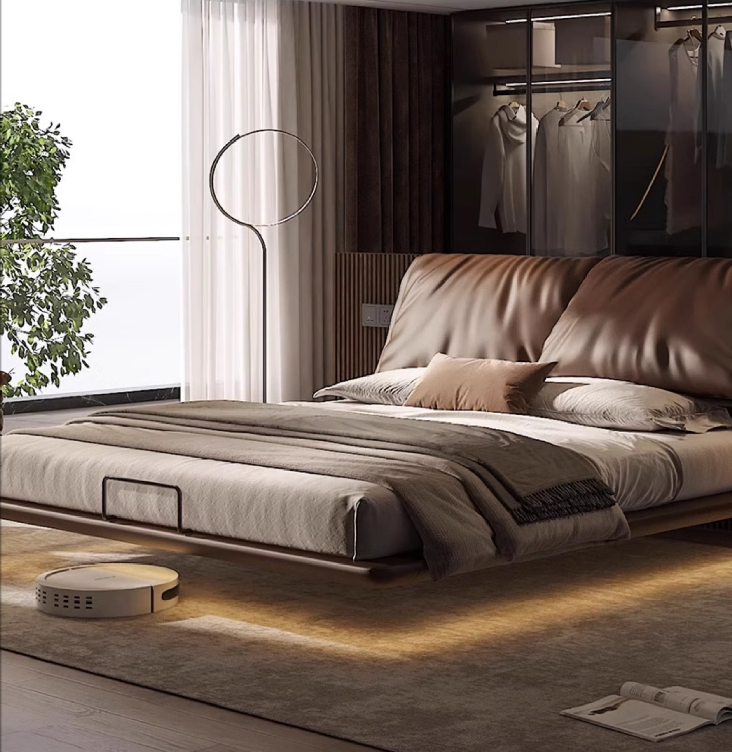 giường da được tạo hình gọn gàng, thanh thoát, loại bỏ mọi chi tiết thừa để tôn vinh sự sang trọng và hài hòa. Thiết kế hài hòa với không gian nội thất, mang đến phòng ngủ sự yên bình và hiện đại.
