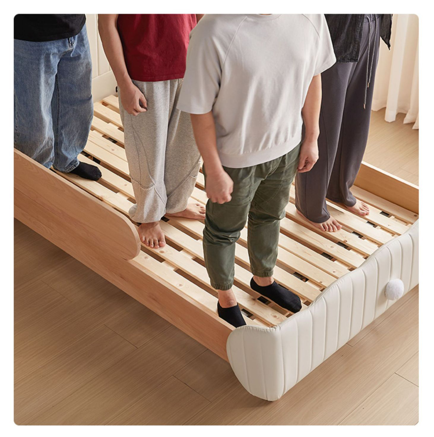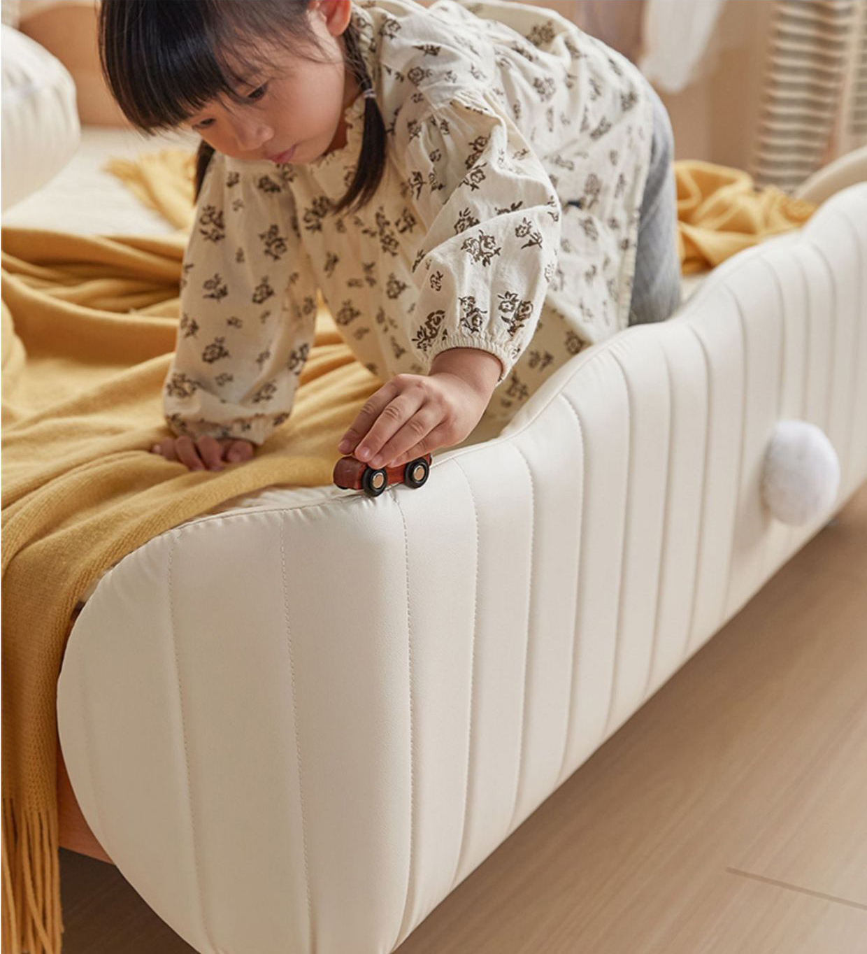 Không chỉ chú trọng đầu giường, phần đuôi giường ODGN22 cũng được bao bọc da đồng bộ và trang trí tỉ mỉ. Các đường may thẳng hàng, bo viền khéo léo và lớp đệm mềm giúp bé thoải mái khi vô tình chạm phải. Đây không chỉ là phần hoàn thiện, mà còn nâng tầm tổng thể thiết kế thêm sang trọng.