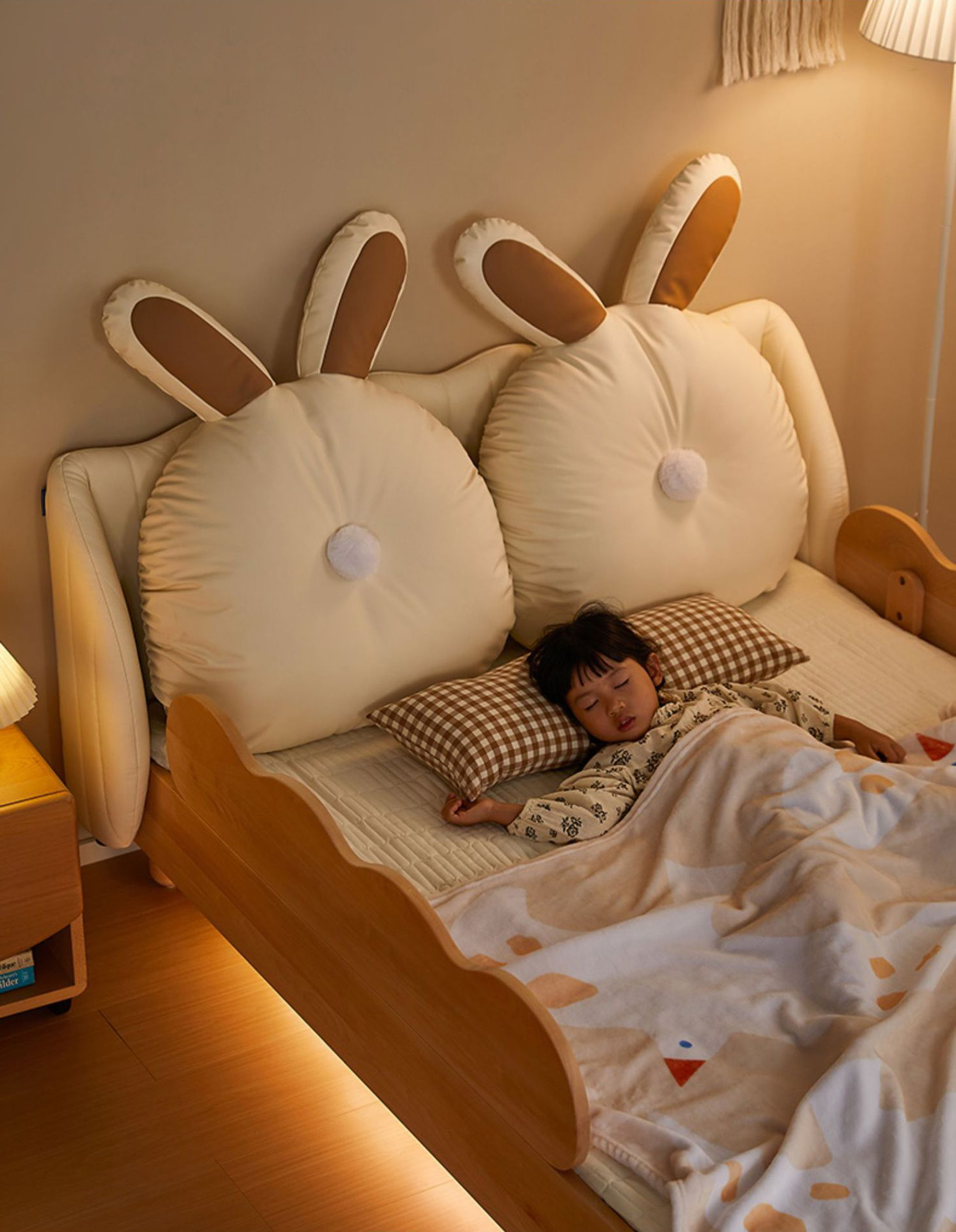 Giường trẻ em ODGN22 không chỉ là chiếc giường ngủ mà còn là góc cổ tích thu nhỏ trong phòng bé. Với đầu giường tai thỏ bọc da ngộ nghĩnh, đuôi giường tinh tế, khung gỗ sồi chắc chắn và ngăn kéo tiện lợi, sản phẩm mang đến sự kết hợp hoàn hảo giữa an toàn, bền đẹp và giàu tính thẩm mỹ. Đây là món quà tuyệt vời để bé có những giấc mơ trọn vẹn trong không gian của riêng mình.
