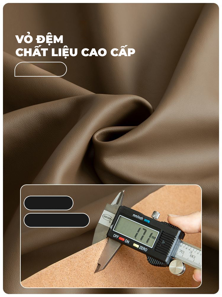 giường ngủ được bọc bằng da bò cao cấp, mềm mại và sang trọng. Chất liệu này không chỉ nổi bật bởi vẻ đẹp tự nhiên mà còn có khả năng chống trầy xước, dễ vệ sinh, giúp giữ gìn vẻ ngoài luôn như mới.