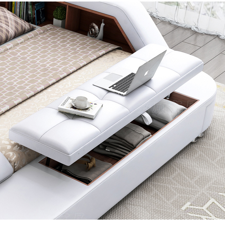 Chiếc giường đem đến cho người dùng một hệ thống lưu trữ thông minh với các ngăn kéo/ hộc tủ/ kho lưu trữ đóng mở tiện lợi để đựng thêm nhiều vật dụng cá nhân mà không cần sắm thêm tủ đựng đồ. Bên cạnh đó, sản phẩm còn tích hợp cổng sạc usb, ghế đẩu di động,… vô cùng tiện nghi.