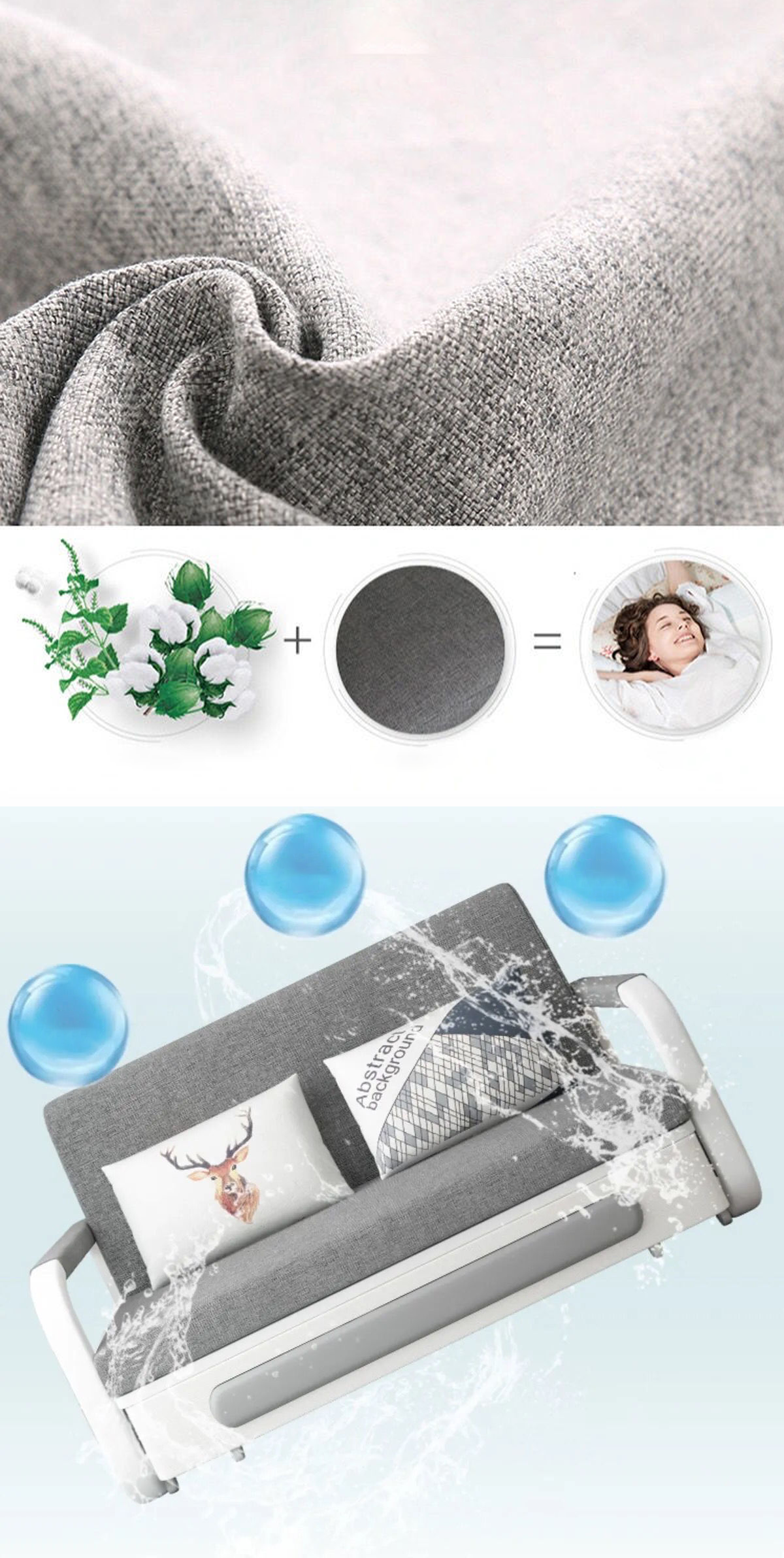 Sử dụng vải lanh (sợi Linen) cao cấp cho phần vỏ sofa. Loại vải này có kết cấu mềm mại, thoáng khí, thân thiện với làn da, cho cảm giác thoải mái mỗi khi tiếp xúc. Đặc biệt, có thể tháo rời vỏ sofa và vệ sinh dễ dàng, chất vải bền bỉ, không bị sờn hoặc bạc màu mỗi khi giặt, dù giặt tay hay giặt máy.