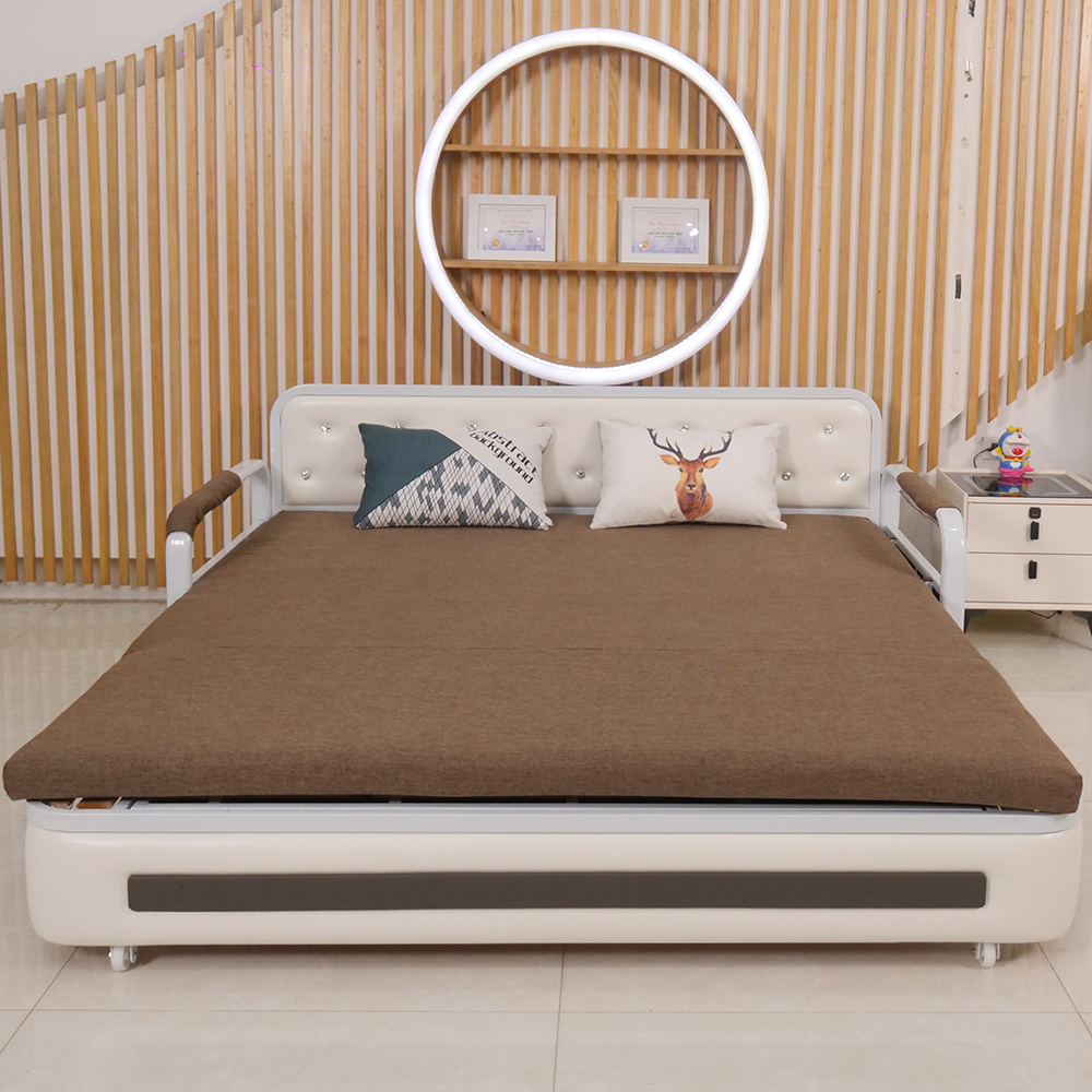 Sản phẩm ngày càng chứng minh được ưu thế của mình so với những chiếc sofa hay giường ngủ truyền thống. Không chỉ đơn thuần là chốn ngủ nghỉ sau ngày dài lao động mệt mỏi, sản phẩm này còn nơi tiếp khách cực sang trọng bởi thiết kế hiện đại cùng khả năng chuyển đổi công năng một cách linh hoạt.