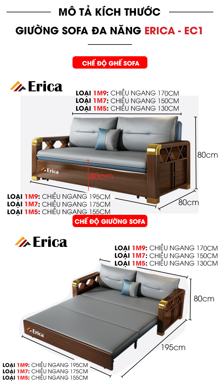 | Tên sản phẩm: Giường sofa thông minh cao cấp ERICA - EC1 | |