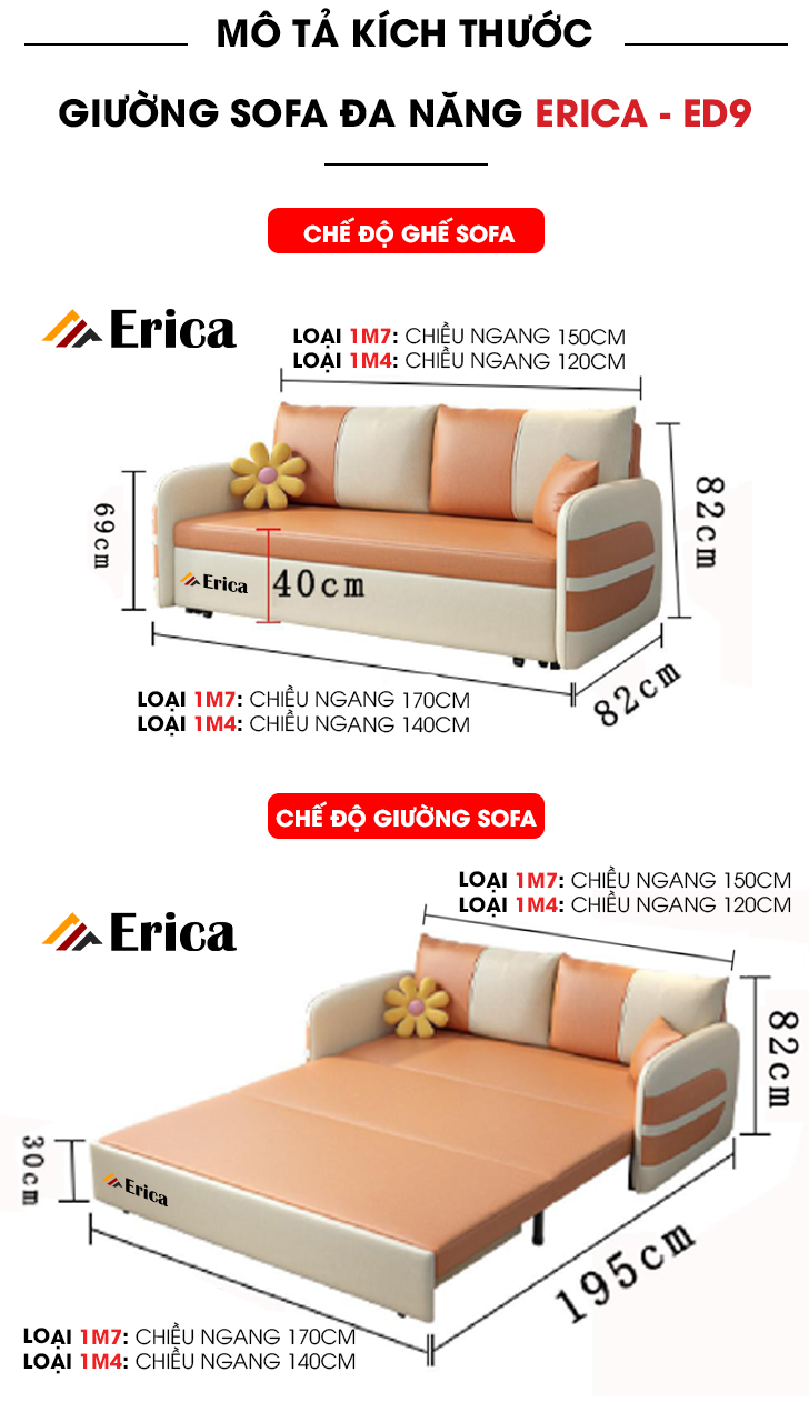| Tên sản phẩm Giường sofa thông minh cao cấp ERICA - ED9 | |