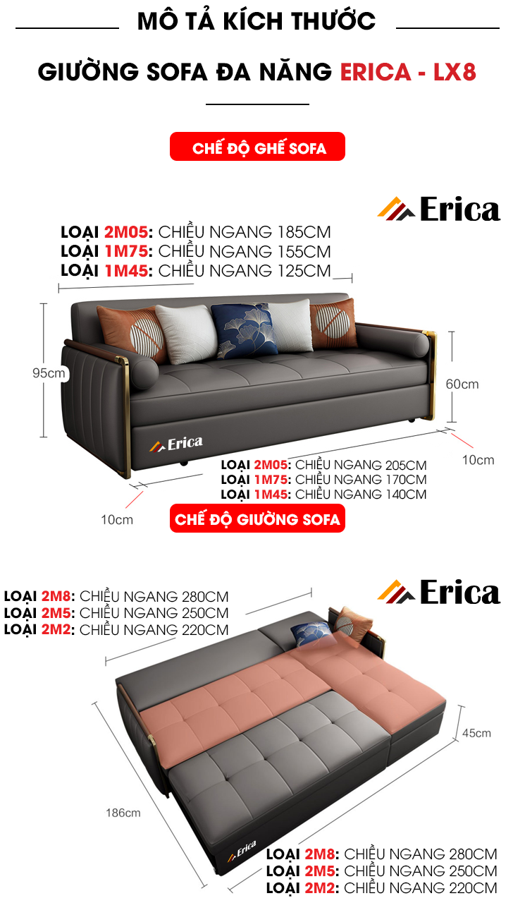 | Tên sản phẩm: Giường sofa thông minh cao cấp ERICA - LX8 | |