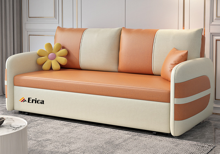 ERICA – ED5 luôn thu hút ánh nhìn từ mọi góc độ nhờ thiết kế Bắc Âu đẹp hút hồn. Nếu sự tinh khiết của gam màu trắng mang đến chút khuấy động dịu dàng, thì sự trầm ấm của gam màu nâu khiến tổng thể trông bớt nhạt nhòa hơn. Tone màu vàng bóng của khung chân kết hợp cùng màu của vải đệm đã tạo nên sự tương phản màu sắc bắt mắt. Chỉ một sản phẩm nhưng lại mang trong mình đến 3 công năng ưu việt: ghế sofa, giường ngủ,  ngăn chứa đồ. Các thao tác chuyển đổi diễn ra đơn giản, dễ dàng, không tốn thời gian & công sức.