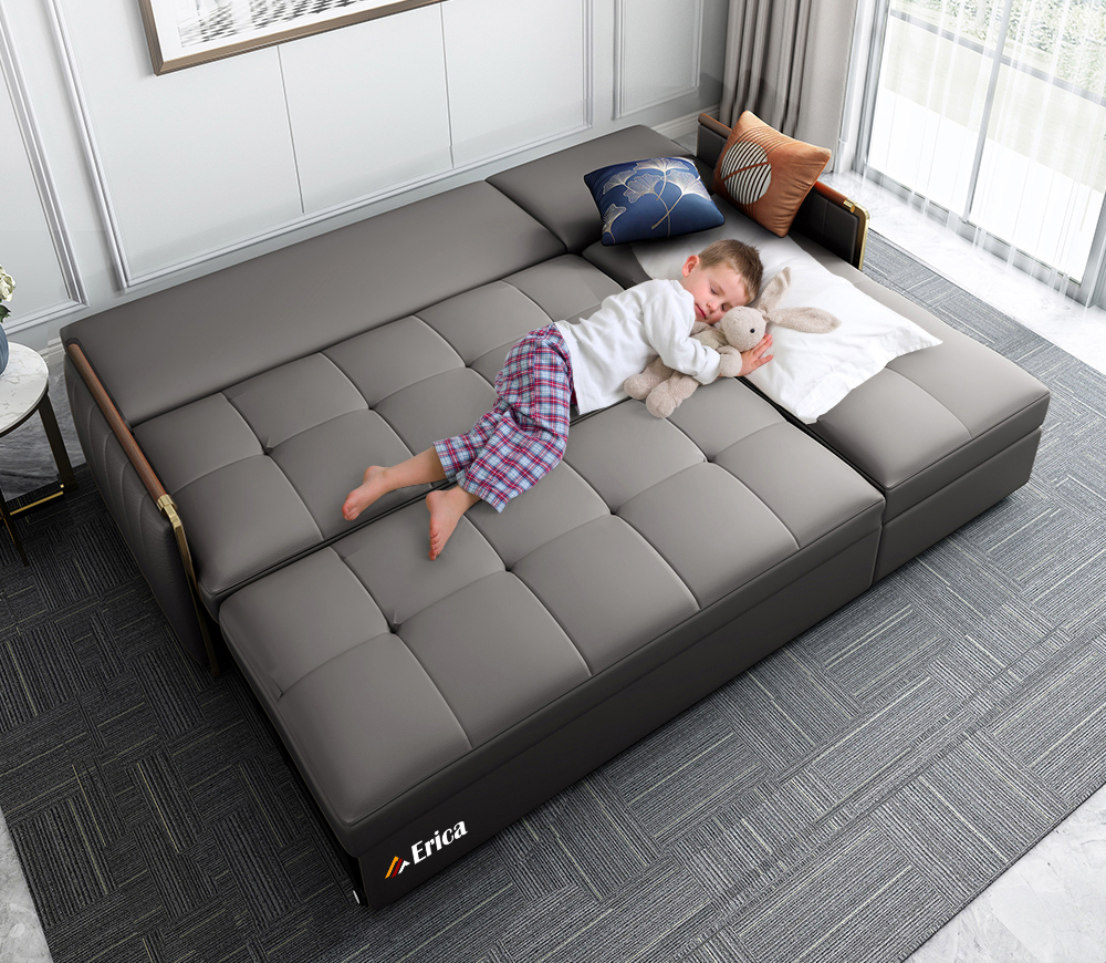 Sofa giường thông minh cao cấp sở hữu thiết kế đẳng cấp, dễ dàng biến chiếc sofa thông thường thành giường ngủ mềm mại khi cần thiết. Thiết kế này cực tiện lợi khi bố mẹ muốn cho bé nằm cạnh mình trong phòng ngủ. Điều này vừa tạo cảm giác an toàn và gần gũi, đồng thời giúp bố mẹ có thể dễ dàng theo dõi và chăm sóc con vào ban đêm mà không cần phải rời khỏi phòng.