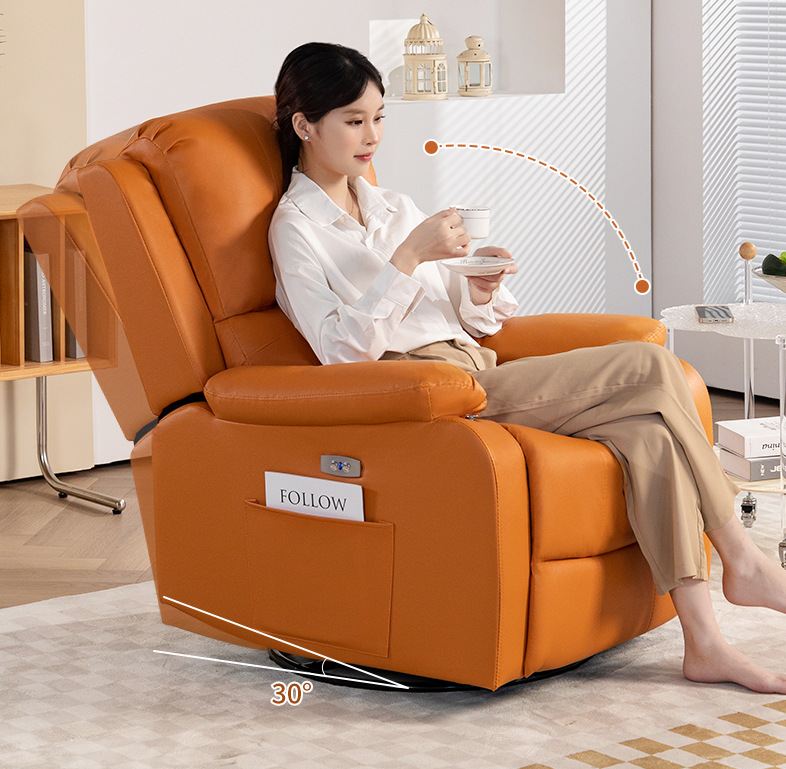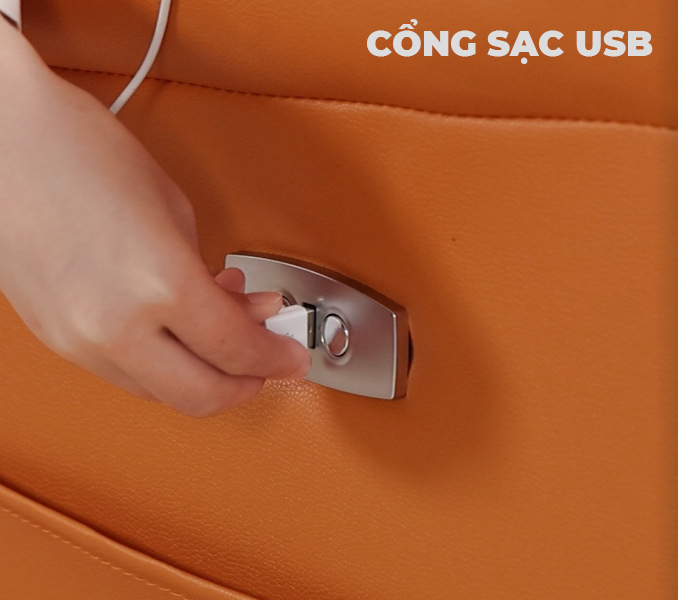 Ghế được tích hợp cổng sạc USB bên hông, thuận tiện sạc điện thoại, máy tính bảng hay thiết bị cá nhân trong lúc nghỉ ngơi, không cần rời khỏi chỗ ngồi để tìm ổ điện.