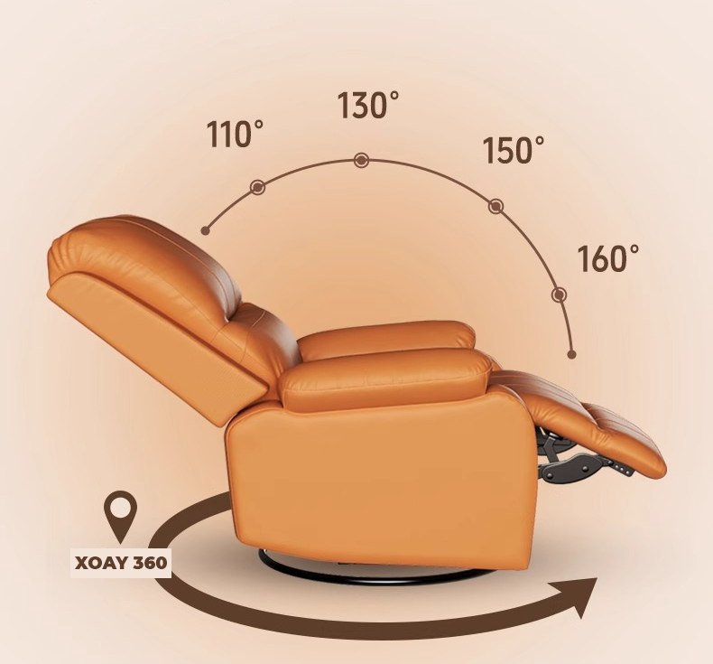 Bạn có thể tùy chỉnh độ nghiêng lưng ghế và nâng/hạ phần chân theo nhu cầu sử dụng. Dải góc điều chỉnh linh hoạt giúp bạn lựa chọn được tư thế phù hợp nhất để đọc sách, làm việc hay nghỉ ngơi.