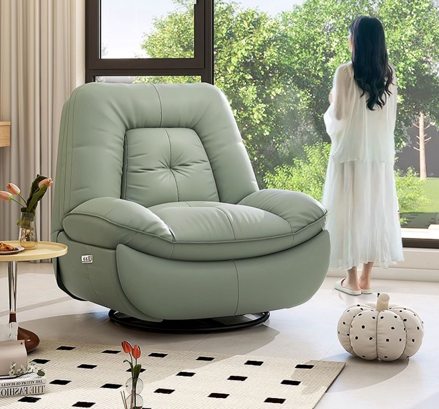 Chân xoay linh hoạt 360° cho phép bạn thay đổi góc nhìn hoặc vị trí ngồi chỉ bằng một cú xoay nhẹ. Dù bạn muốn hướng ra cửa sổ, quay vào bàn làm việc hay trò chuyện với người bên cạnh, tất cả đều có thể thực hiện mượt mà mà không cần dịch chuyển cả chiếc ghế.