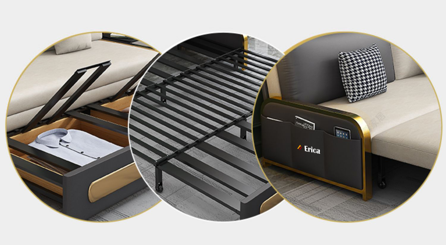 Bên cạnh đó, với khả năng chịu lực tốt nên sofa giường khung kim loại còn được tích hợp thêm tính năng phụ là ngăn chứa đồ.